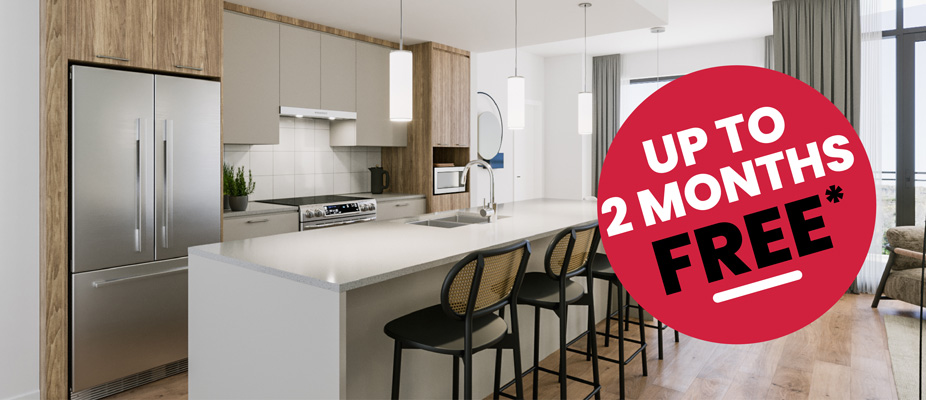 Right at your door, on the edge of the public square, you will find all the essentials: fine groceries, specialty restaurants, a gym, a medical clinic, a dry cleaner, coffee shop, a pharmacy, a yoga centre, a municipal library, a 26-acre natural area with multifunctional trails and diversified facilities for your year-round outdoor enjoyment.