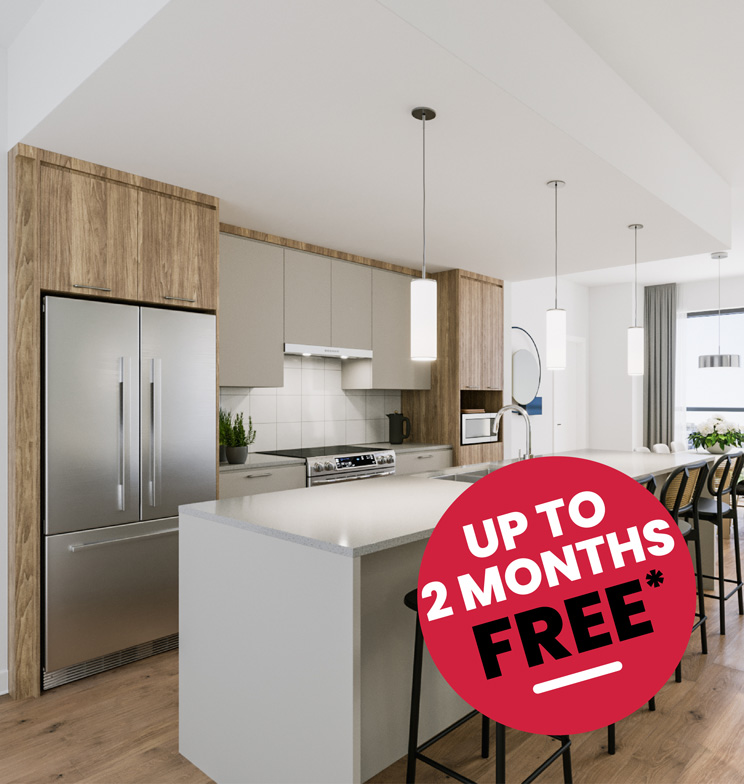 Right at your door, on the edge of the public square, you will find all the essentials: fine groceries, specialty restaurants, a gym, a medical clinic, a dry cleaner, coffee shop, a pharmacy, a yoga centre, a municipal library, a 26-acre natural area with multifunctional trails and diversified facilities for your year-round outdoor enjoyment.